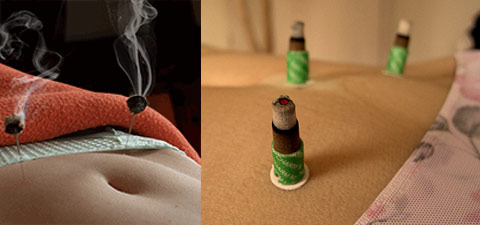 Die Moxibustion ist eine Wärmeanwendung, hier werden Kälteeinflüsse ausgeleitet und Energiedefizite beseitigt. Zur Moxibustion verwenden wir getrockneten Beifuß (Artemisia vulgaris), der über bestimmten Akupunkturpunkten abgebrannt wird.